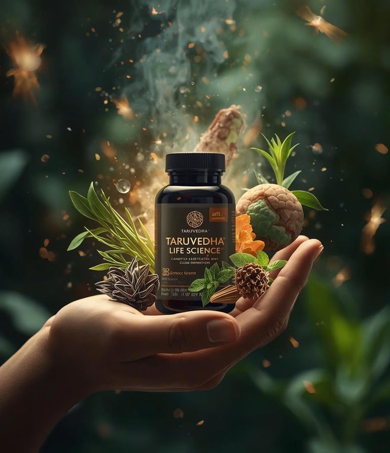 At TARUVEDHA Life Science, we blend the wisdom of Ayurveda with modern science to create safe, effective, and trusted wellness solutions. Rooted in nature and driven by research, our formulations use carefully selected herbs, clean ingredients, and strict quality standards to support vitality, immunity, and holistic health.